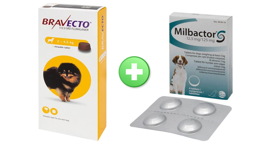 Complete Treatment - BRAVECTO FLEA & TICK PLUS MILBACTOR WORMER- TOY DOG (2-4.5kg)